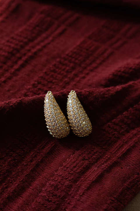 Brinco Gota Total Cravejado Banho Ouro 18K